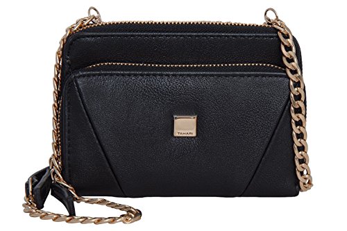 (Tahari)/Accessories/Wallets, Money Key Organizers/DIRECT FROM USA/Tahari Modern Times Small Double Zip Wallet/Cross body Bag With RFID (BLACK)