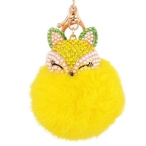 GreatFun Fur Ball Key Chain Artificial Fox Head Pearl Rhinestone Key Chain Bag Car Key Pendant