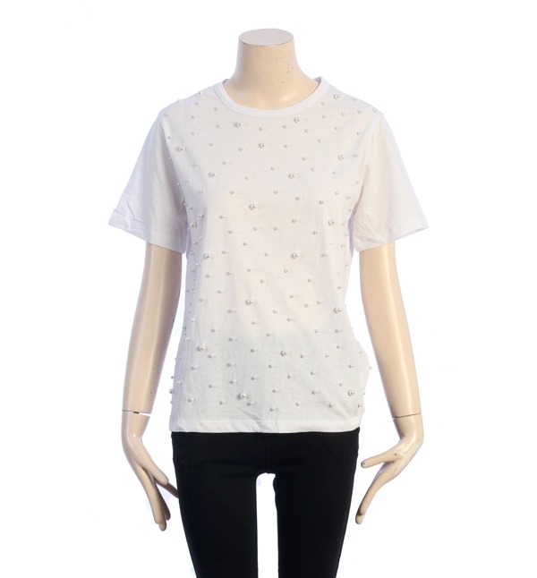 SATIN, 진주장식으로 세련스러운 스타일 감각을 연출하는 반팔 티셔츠입니다