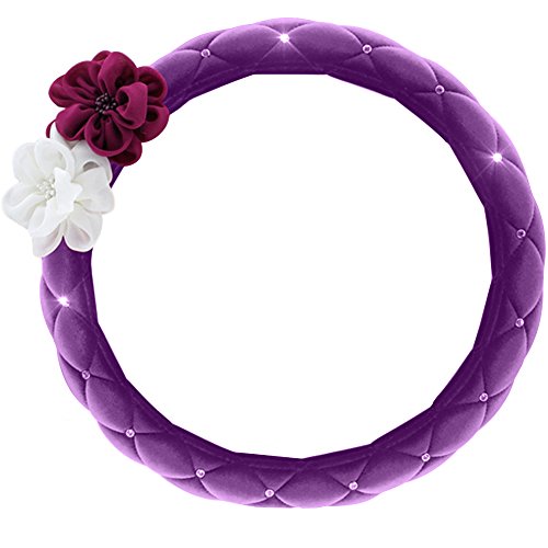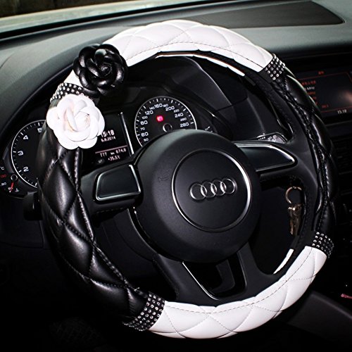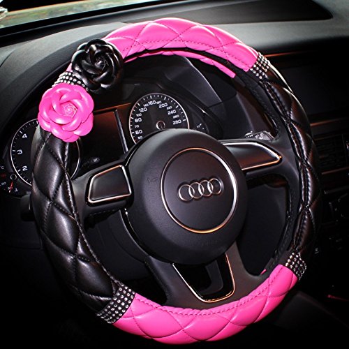 Four seasons general automotive supplies camellia flower rhinestone diamond ladies car steering wheel cover sets