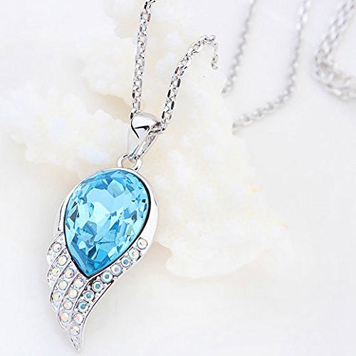 -. Title : Sojewe Silver tone Angel Fly Wing Pendant Necklace Blue Swarovski Elements Crystal 18" Chain for Women