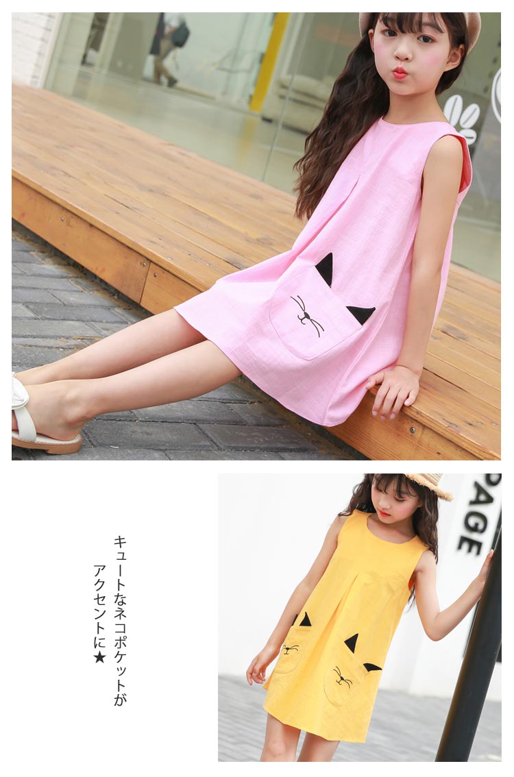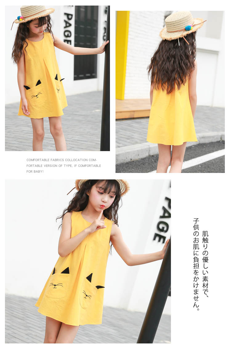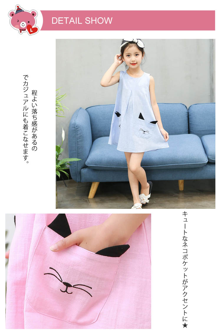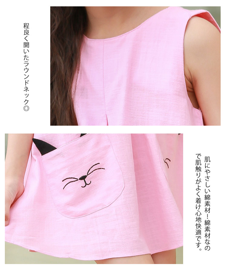 | シンプルで可愛さが溢れるワンピース!キュートなネコポケットがアクセントに★ 肌触りの優しい素材で、子供のお肌に負担をかけません。 | |