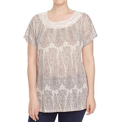 Product DescriptionLucky Brand plus short sleeve fashion knit top with contrast print and macrame detail0