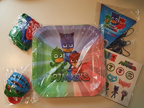 -. Binding : Toy -. Brand : Merchant Medley Party Supplies -. Color : multicolored -. EAN : 0705641247479 -. Feature : 10 Balloons, 10 Wristbands, 10 Plates, 10 Sticker Packs and One Birthday Banner! / Everything You Need To Put Together a Great PJ Masks Party! / Balloons Are 12 Inches In Size and Made of Latex! / Perfect For 10 Guests to Have Lots to Take Home! / Make Your Party Memorable With This Complete Set! -. IsAdultProduct : 0 -. Label : Merchant Medley -. Manufacturer : Merchant Medley -. MPN : 7152168 -. PackageQuantity : 1 -. PartNumber : 7152168 -. ProductGroup : Toy -. ProductTypeName : TOYS_AND_GAMES -. Publisher : Merchant Medley -. Studio : Merchant Medley -. Title : PJ Masks Theme Birthday Party Favors Pack For 10 Guests Wristbands Plates Balloons -. UPC : 705641247479
