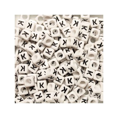 White Plastic Cube Alphabet Beads, Small, 6mm, Letter K, 100 pcs