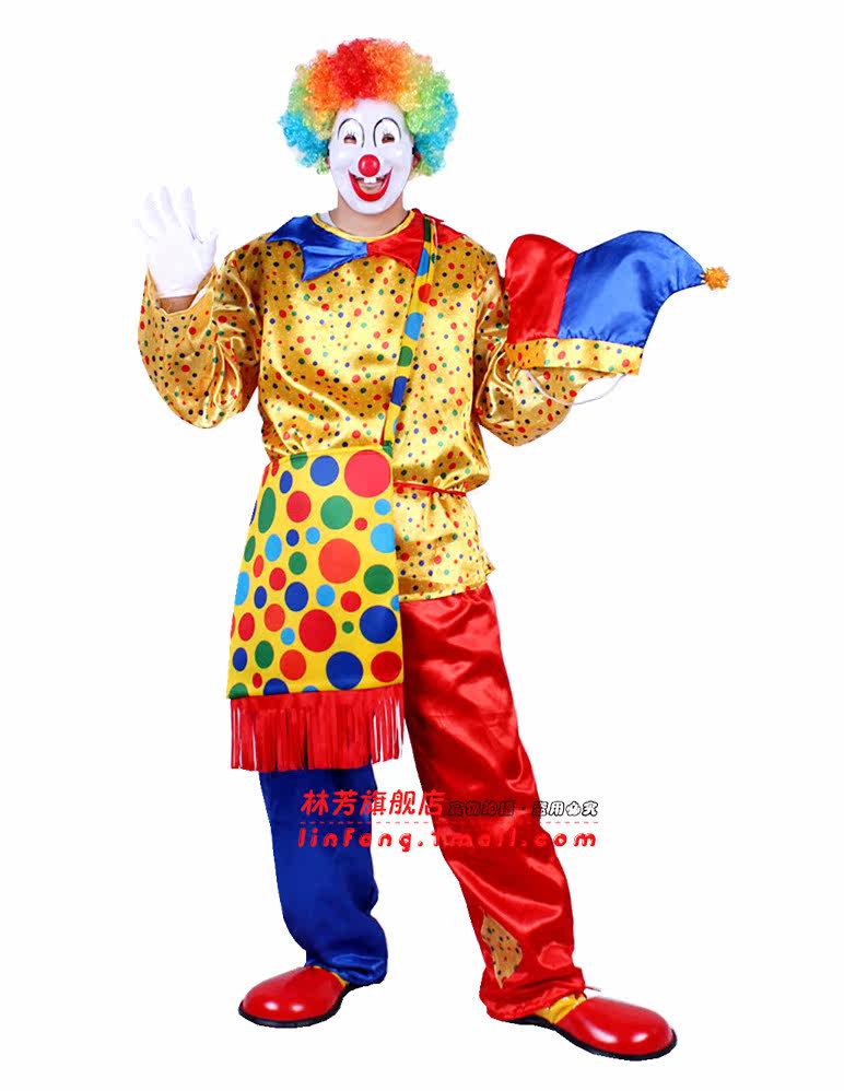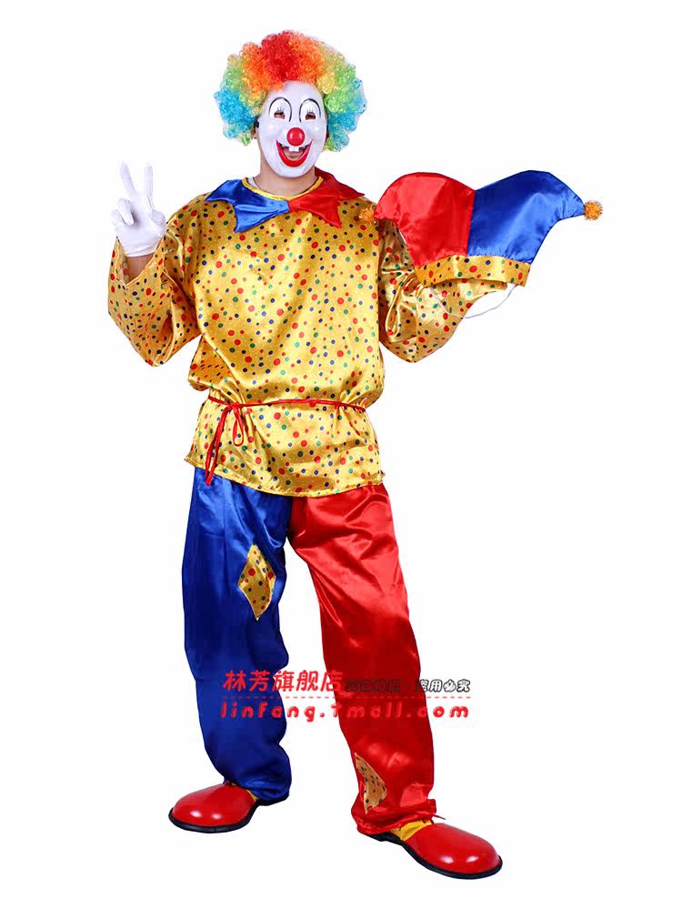 Brand: Lin FangFabrics: knitted fabric, clown costume for split, including hats, clothes, trousersSize: figure on the model high 173CM, clothes fit for height 165-185cm of adult use