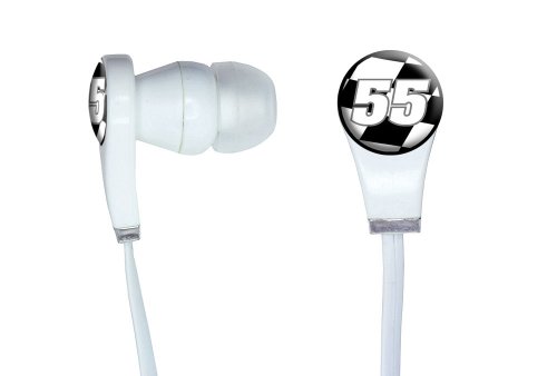 -. Title : Graphics and More Number 55 Checkered Flag - Racing Novelty In-Ear Headphones Earbuds - Non-Retail Packaging - White