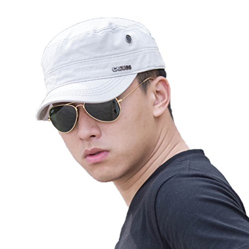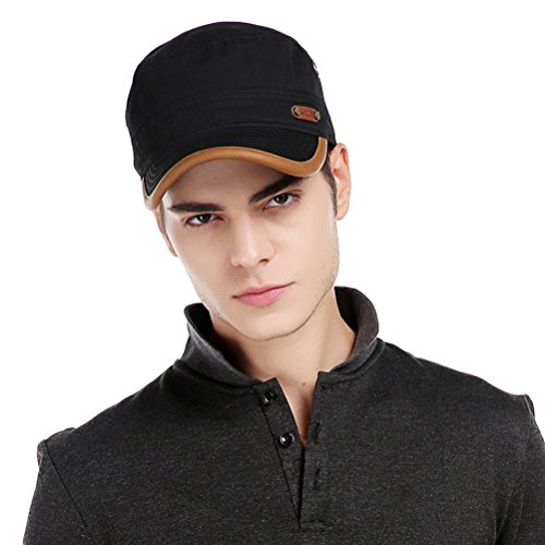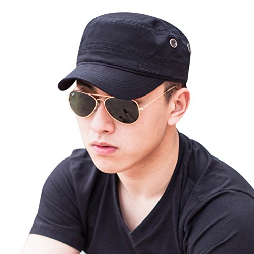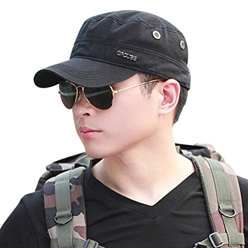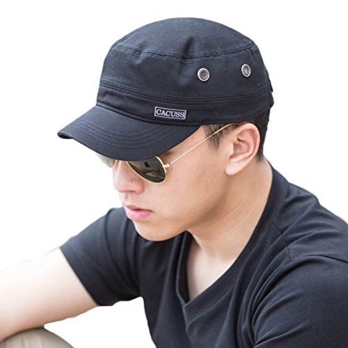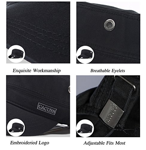 | CACUSS Men's Cotton Army Cap Cadet Hat Military Flat Top Adjustable Baseball Cap |