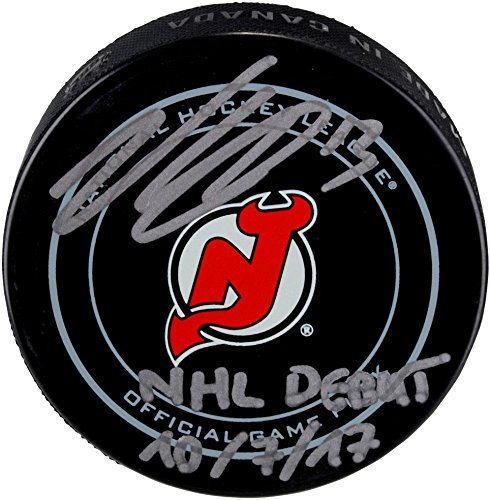 Nico Hischier New Jersey Devils Autographed Official Game Puck with NHL Debut 10/7/17 Inscription - Fanatics Authentic Certified
