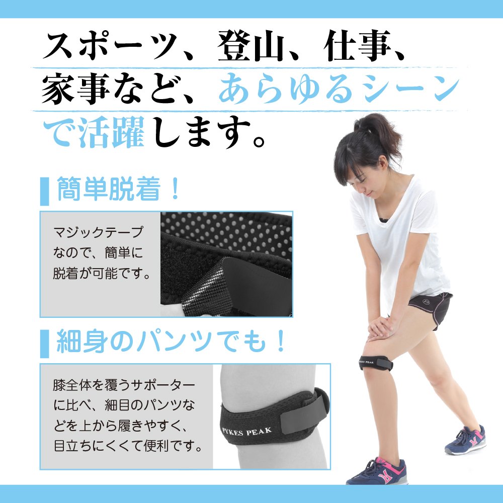 2. Compared to a supporter that covers the entire knee as a whole, it is compact in size, so it is easy to wear narrow pants and the like from the top, and it is less conspicuous.