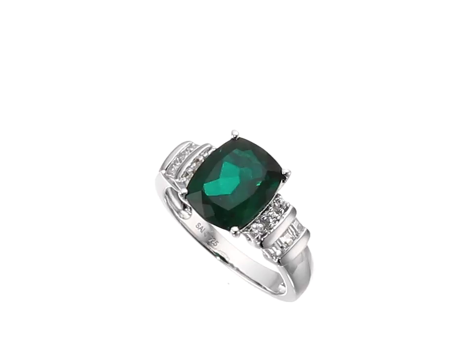 Sterling Silver Created Emerald and Created White Sapphire Cushion Ring