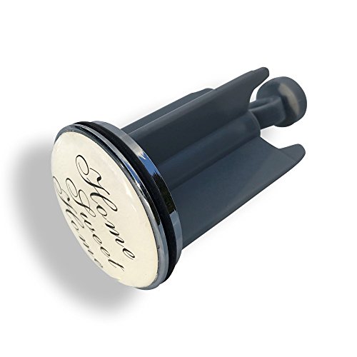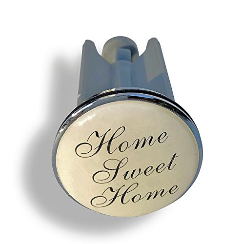 The HOME SWEET HOME Drain Plug, Stopper, Word Art Inspirational Text, 1 5/8D Inch Size, Elegant Calligraphic Script, Rubber, Plastic and Zinc, Humorous Gift, By Whole House Worlds