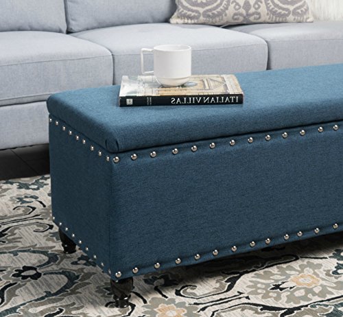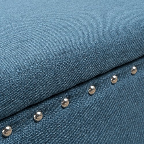 -. Color : Blue -. EAN : 0096518041949 -. Feature : This storage ottoman bench is simple and also unique and wonderful / This beautiful blue ottoman features an extra storage for your home, perfect for bed end, living room or as entryway bench. / Gorgeous stud work around the entire piece / With traditional legs to complement any decor, it is ideal for any room in your home or office / 18.25 inches high x 42 inches wide x 18.25 inches deep -. Label : Furniture of Home -. Manufacturer : Furniture of Home -. PackageQuantity : 1 -. ProductGroup : Furniture -. ProductTypeName : HOME_FURNITURE_AND_DECOR -. Publisher : Furniture of Home -. Size : Large -. Studio : Furniture of Home -. Title : Storage Ottoman Bench Blue Nailhead Studded Fabric Coffee Table Entryway Bed End -. UPC : 096518041949