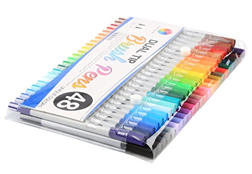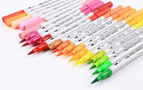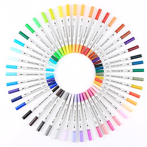 Smart Color Art Dual Tip Brush Pens with Fineliner Tip 0.4 Art Markers (48 Unique Colors)