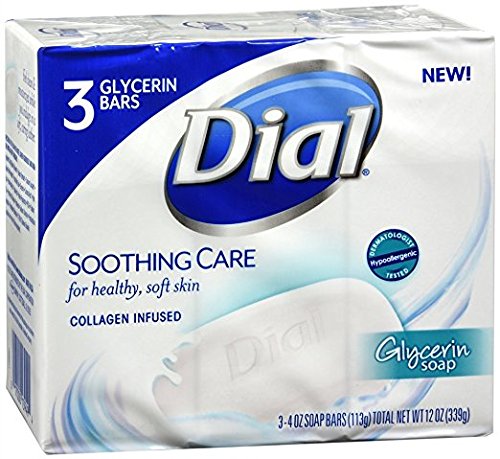 -. Title : Dial Collagen Infused Glycerin Bar Soap, Soothing Care, 4 Ounce Bars, 3 Count (Pack of 3)