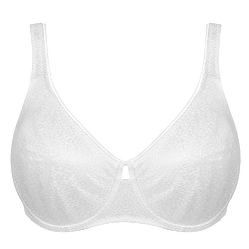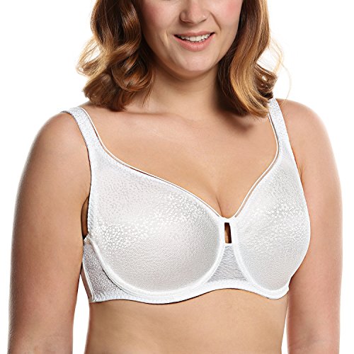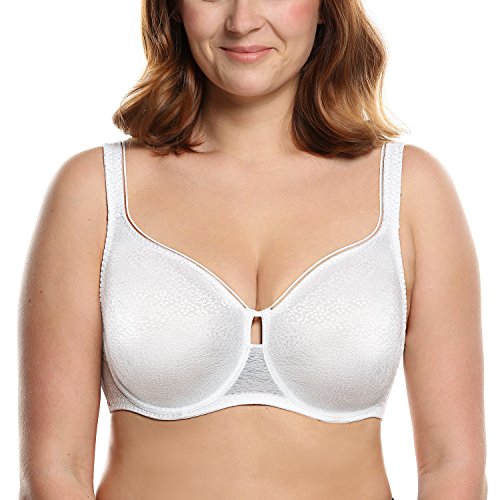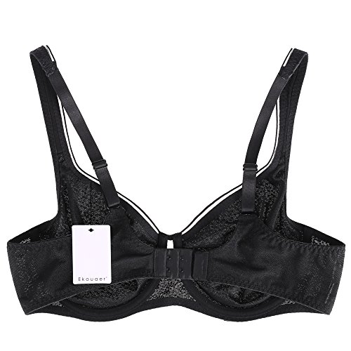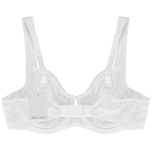 -. Binding : Apparel -. Brand : Ekouaer -. Department : womens -. Feature : Lace:85% Polyamide/15% Elastane;Mesh:72% Polymide/28% Elastane;Cup lining:95% Polyamide/5% Elastane / All over stretch lace underwire average coverage unpadded bra molded cups with mesh lining for added support. / Open window feature at center gore,Adjustable wide straps / 3 row hook-and-eye closure / Hand Wash.Available in black and white from size 36B-42DD -. Model : EK001635 -. ProductGroup : Apparel -. ProductTypeName : BRA -. Title : Ekouaer Women's Full Coverage Unlined Sheer Underwire Minimizer Bra 36B-42DD