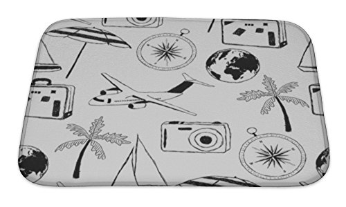 Gear New No Slip Microfiber Memory Foam Doodle Travel Pattern Bath Rug Mat, 24" X 17"