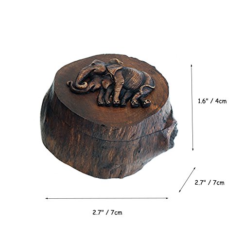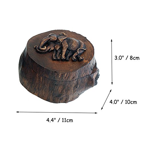 -. Feature : Imported from India, made by handmade with top grade teakwood. / Elephant rotatable lid will protect your treasures enough. / Dimension(L x W x H): 4.4" x 4.0" x 2.8" (11 x 10 x 7cm); Weight: 285g. / Drawing: Moreover, you can draw on the outer of box to build your unique collection and wishes. / Great gift for Christmas, Thanksgiving day, memory box for the wedding or a personalized decoration box and the gift box.