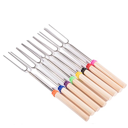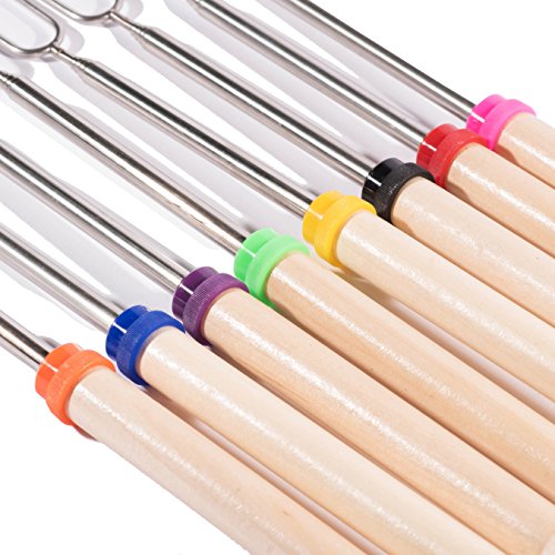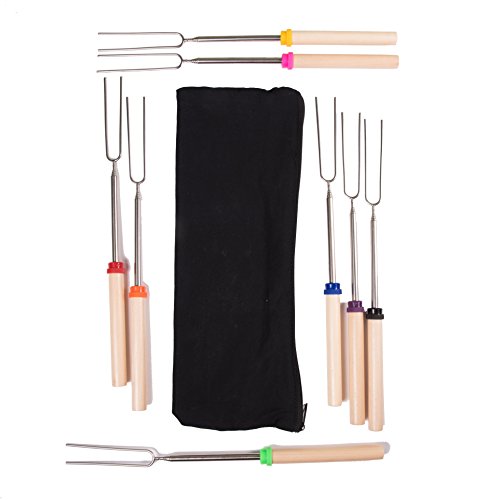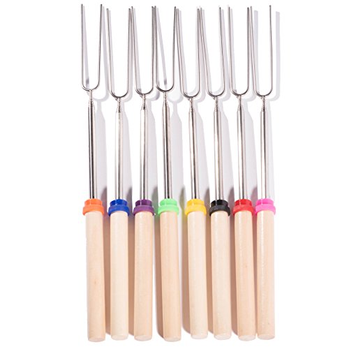 Camp Chef Extendable Roasting Forks with Wood Handle set of 8 Barbecue Fork Stainless Steel Hot Dog and Marshmallow Man and Woman Collapsible & eBook
