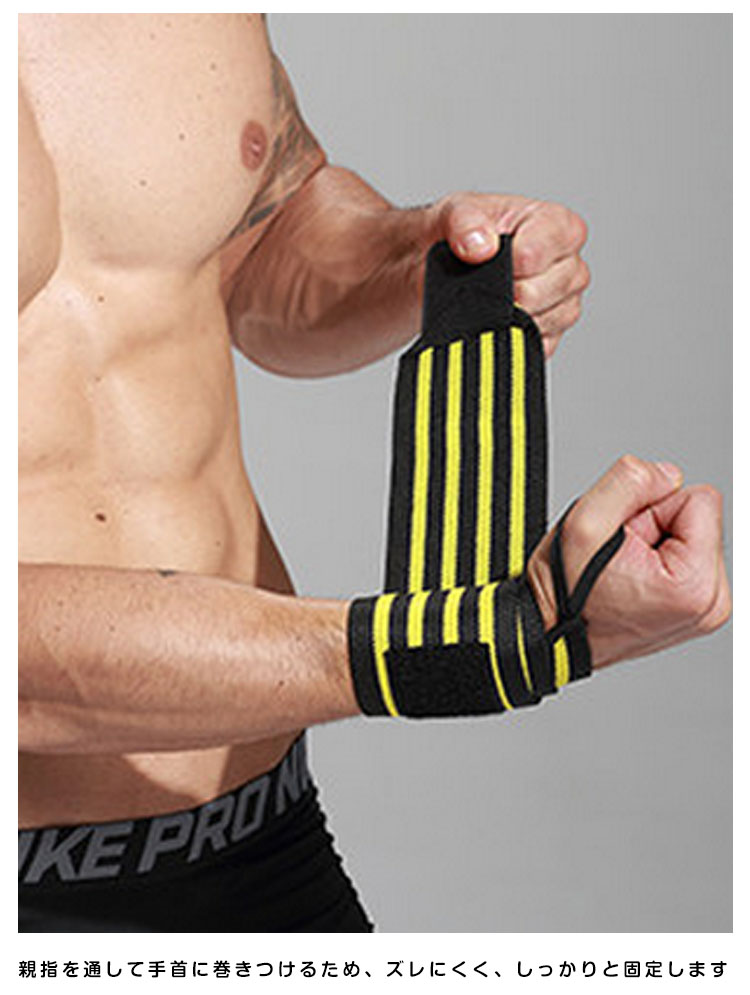| 手首をハードな負荷から守る、アクティブな動きもサポート。スポーツ時のアクティブな動きもサポート。親指を通して手首に巻きつけるため、ズレにくく、しっかりと固定します。 | |