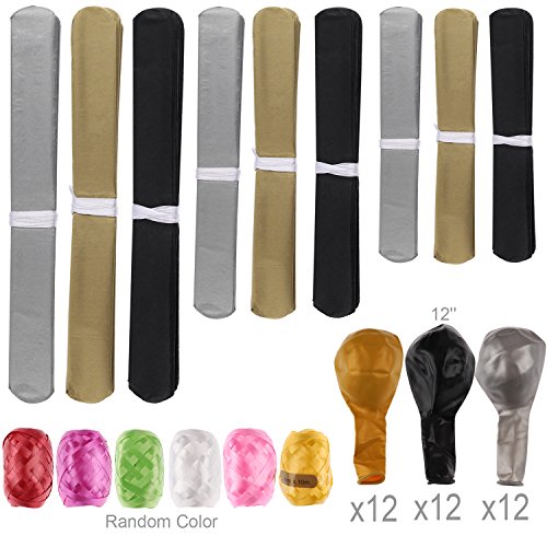 - What you get - 9pcs Tissue Paper Flowers, 36pcs Latex Party balloons and 6 pcs 5mm * 10M Rolling Ribbons (Mixed colors, Random)