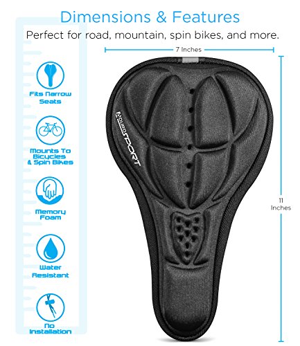 Aduro Sport Bike Seat Memory Foam Cushion Cover Pad for Bicycle Seat Saddle, No Installation Needed, Bounce Free - Enjoy Longer Rides, Water Resistant
