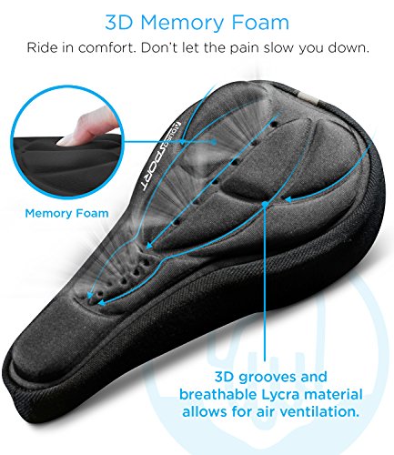 Enjoy longer rides - Memory Foam Bicycle Seat Cushion with extra padding for comfort, no more pain!