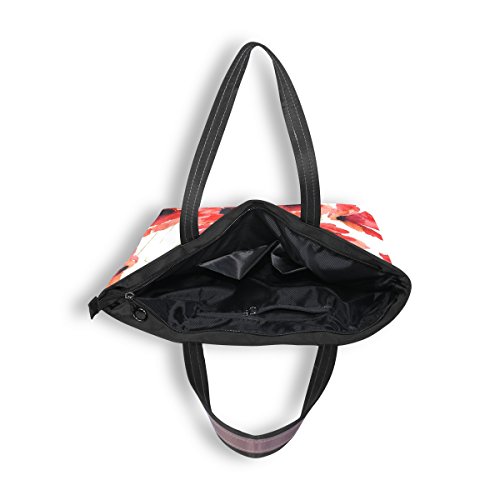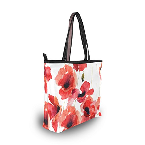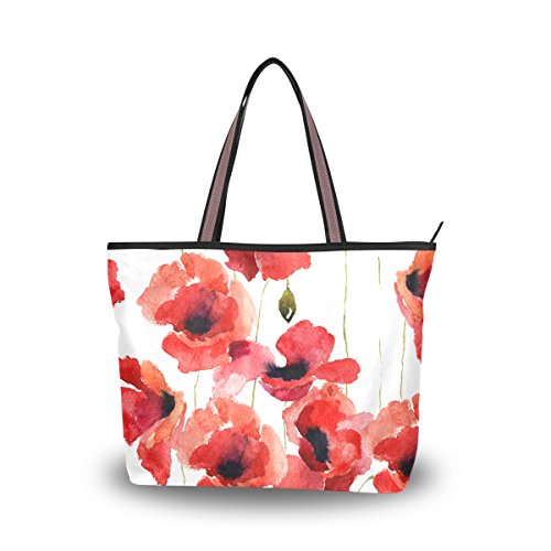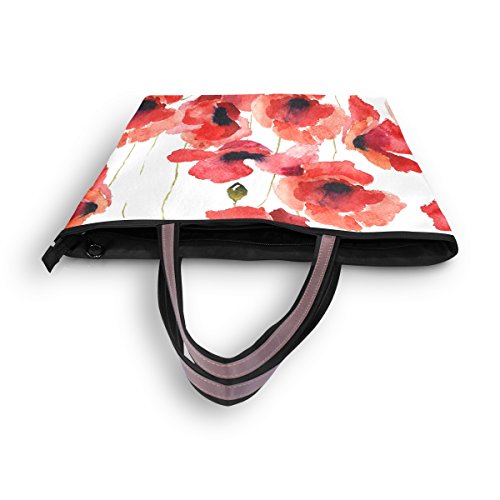 JSTEL Women Large Tote Top Handle Shoulder Bags Stylized Poppy Flowers Illustration Patern Ladies Handbag