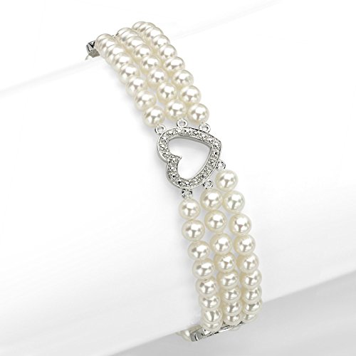 -. Binding : Jewelry -. Brand : La Regis Jewelry -. Department : womens -. Feature : 14k White Gold / White Freshwater Cultured Pearls / 7 inches Length Bracelet / 3-rows Strand / Heart-shape Clasp -. Label : La Regis Jewelry -. Manufacturer : La Regis Jewelry -. ProductGroup : Jewelry -. ProductTypeName : FINENECKLACEBRACELETANKLET -. Publisher : La Regis Jewelry -. Studio : La Regis Jewelry -. Title : 14k White Gold Heart-shape Divider 4-4.5mm White Freshwater Cultured Pearl 3-rows Bracelet, 7"
