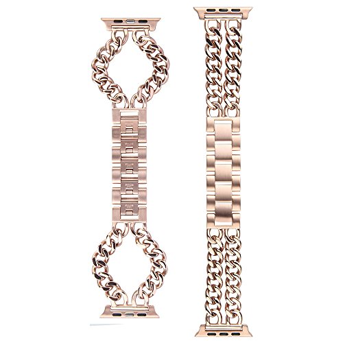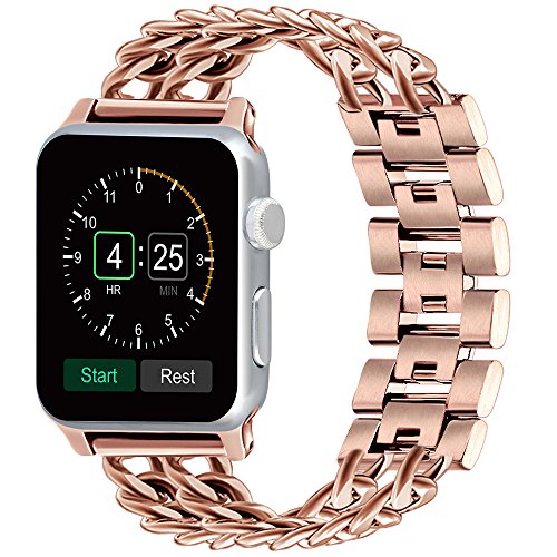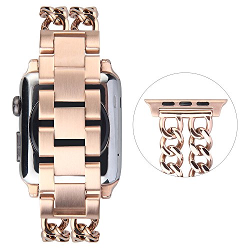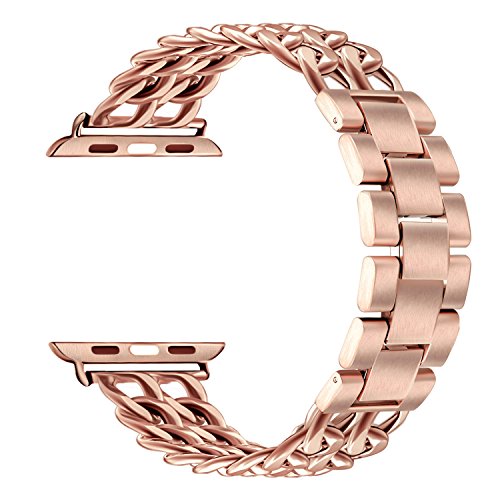 Metal Band For Apple Watch Band Series 1 Series 2, TOROTOP Stainless Steel Watch Band Replacement Strap with Flexible Chains Style Bracelet Strap for Both 38MM Apple Watch Series 1/2(38mm-Rose Gold)