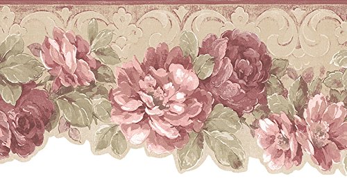 -. Title : Wallpaper Border Die Cut Bottom Edge Victorian Dusty Pink Floral