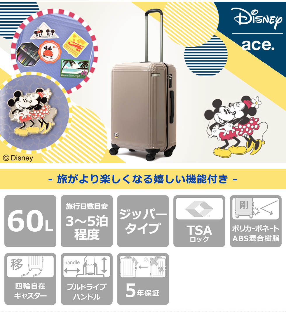Micky & Minnie 's emblem is full of excitement before traveling, accented with chic colors that you can use for a wide range of people. TSA lock pull tab part is a fun motif of Mickey Mouse, it is a fun design like Mickey closes us.