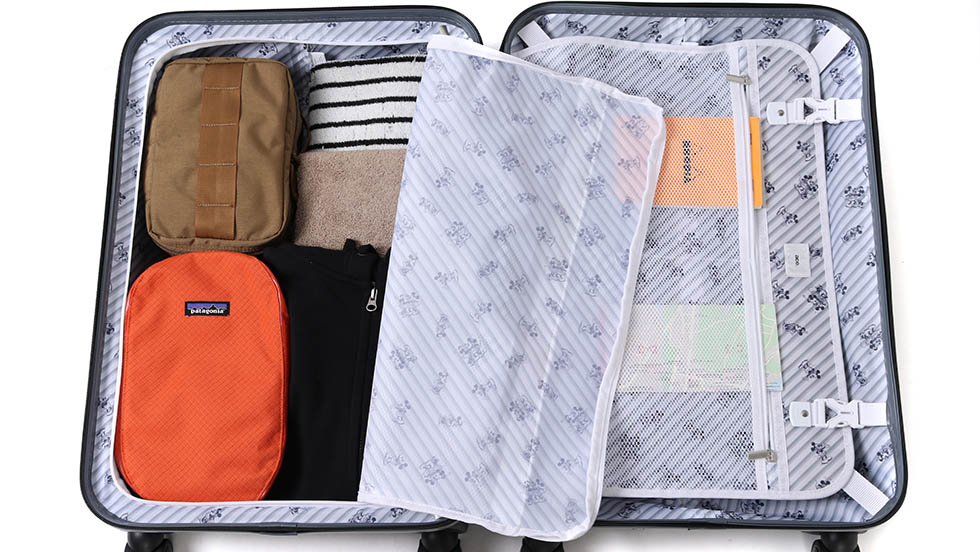 By providing partitions on both sides in the storage part, it is difficult to collapse the load. In addition, it is equipped with pockets with excellent visibility using mesh material, also easy to manage small items.