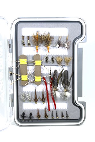 -. Feature : GUARANTEED TO CATCH FISH - We carefully selected the most dependable and time tested trout fly patterns to make this fly assortment perfect for both the beginner and experienced fly fisherman. In fact, if you are unsuccessful with our fly assortment, we will give you a full refund. / MIMIC THE HATCH with REALISTIC DRY FLIES - Included are seven of the most effective and widely used Dry Fly Patterns: Elk Hair Caddis, Griffith's Gnat, Orange Stimulator Fly, Black Ant Fly, Parachute Adams, Chernobyl Ant and Parachute Hopper. / CATCH MORE FISH - Capitalize on subsurface feeding with lifelike NYMPHS and WET FLIES: Partridge & Olive Soft Hackle Fly, Pheasant Tail Beadhead Nymph, Hare's Ear Beadhead Nymph, Zebra Midge Beadhead Nymph and San Juan Worm / EASY ACCESS FLIES - Our small, slim and fully Waterproof Fly Box is preferred by professional guides for its ability to be comfortably stowed virtually anywhere. Small enough to fit in most shirt pockets and will float if dropped in the water. Comes with either Solid Easy Grip Slotted Foam, which holds up to 103 Flies or Slotted Row Foam, which holds up to 95 Flies. Durable PC lid and ABS body. 5.4" x 3.7" x .6" / DURABLE FLIES THAT LAST FISH AFTER FISH - Our fishing flies are hand tied by professional fly craftsmen using premium fly tying material and sharp, high quality hooks. There are no poor quality "filler flies" like you find in most other fly assortments. Our fly fishing kit only contains high quality, dependable trout flies and are available at half the P.R.Ice of the fly shop. The perfect addition to your fly fishing gear!