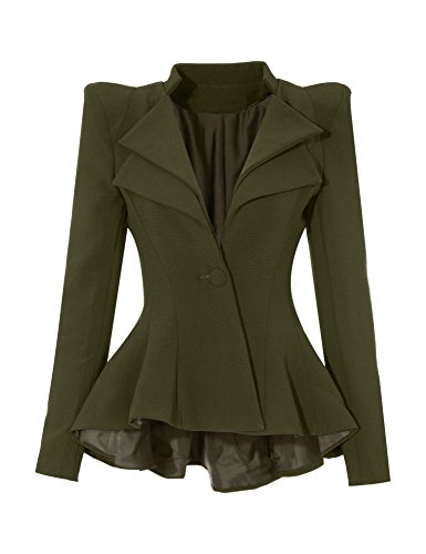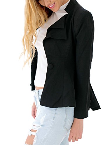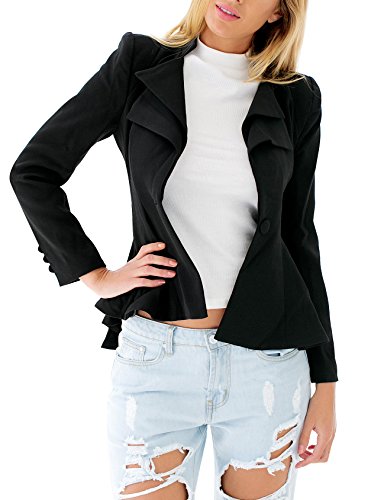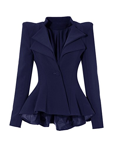 Look like a celebrity by wearing this double lapel asymmetric blazer! It has peplum hi-lo hem and double lapel detailing.