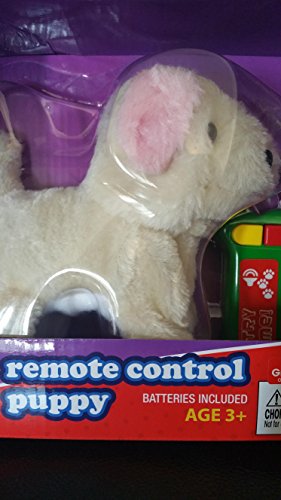 This Play Right Remote Control Puppy Puppy is cream colored with pink ears.