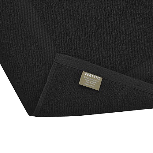 VEEYOO Black Bath Mat Absorbent Cotton Shower Mat Bathroom Floor Bath Rug Washable Bathtub Mat, 20"x32"