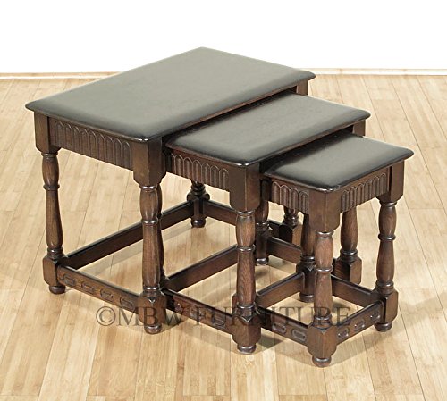 -. Title : Vintage Solid Dark Oak Nesting Table Set (3) c1960Â’s