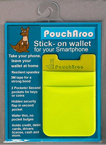 Leave your Wallet or purse at home! the Dual pocket poucharoo securely adheres to the back of your cell phone using super strong 3M Tape. Carry credit cards, business cards and cash the easy and Convenient way. Our patent Pending interior hideaway pocket