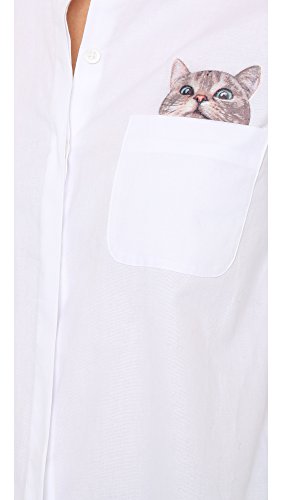 A playful cat graphic peeks from the patch pocket of this Paul & Joe Sister button-down shirt. Rounded hem. Fold-over collar and hidden-button placket. Long sleeves and button cuffs.