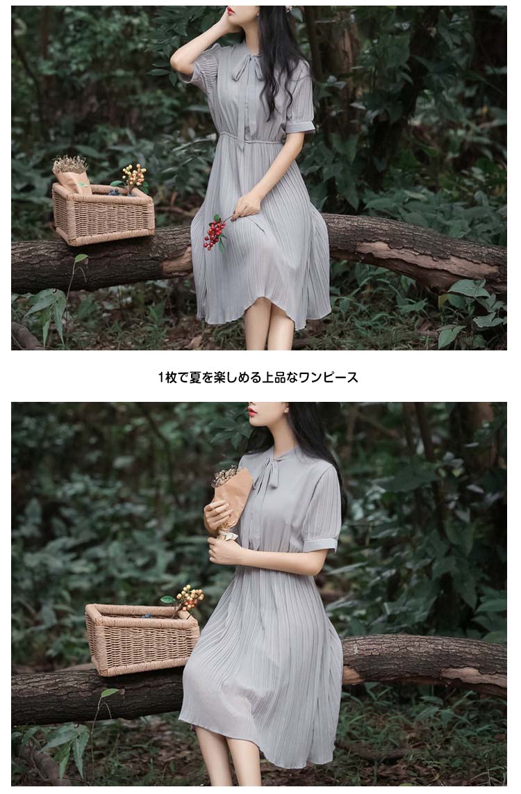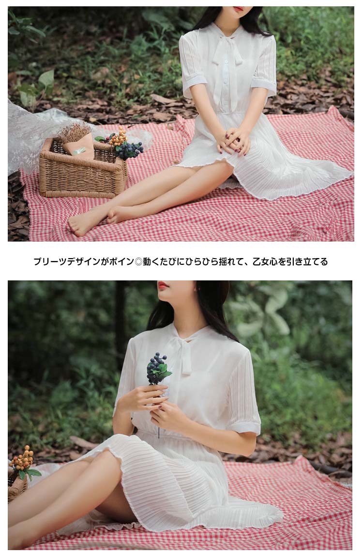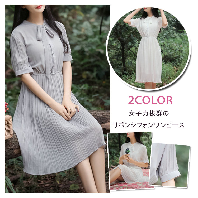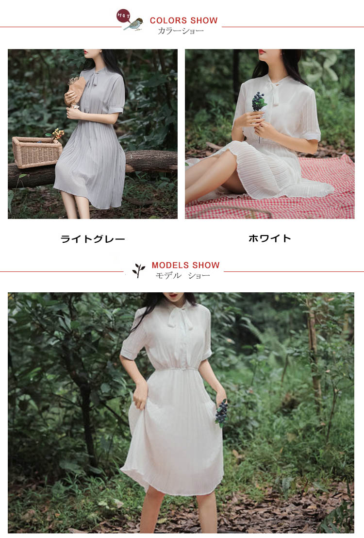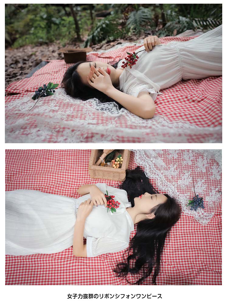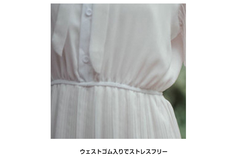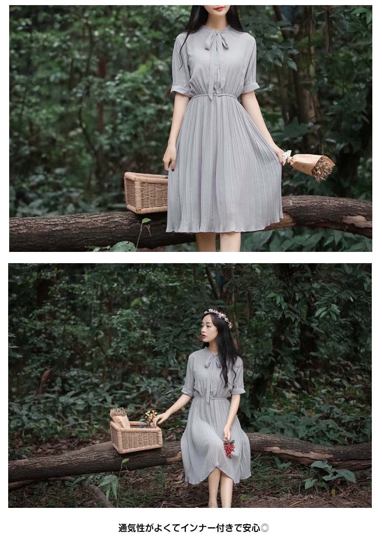 | 女子力抜群のリボンシフォンワンピースプリーツデザインがポイン◎動くたびにひらひら揺れて、乙女心を引き立てるゴム入りの伸縮性のあるつくりで、着心地抜群1枚で夏を楽しめる上品なワンピース通気性がよくてインナー付きで安心◎ | |