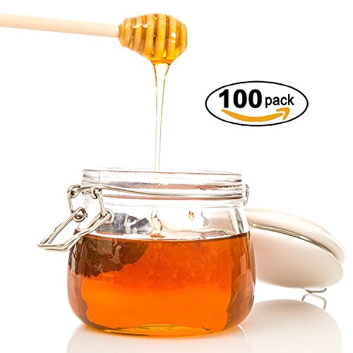 Honey Dipperz 100 PACK - 6" Inches Long (16cm) Wooden Honey Dipper Drizzler Stirring Stick, Spoon Rod Muddler Dispense, Great Gift for Parties, Wedding, Baby Showers, Favors