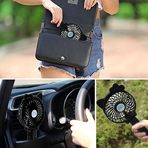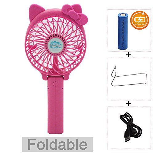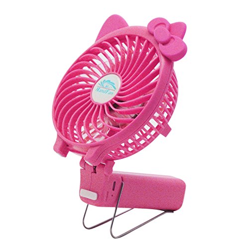 Portable USB Mini Cooling Fan with Metal Clip for Home Office Outdoor (Rechargeable,Handheld,Hello Kitty Style (Pink)