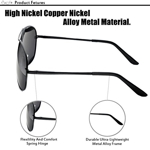 The Sunglasses are Made of High Nickel Copper Nickel Alloy Metal Material,with Durable Ultra-Lightweight Metal Alloy Frame.Lenses block 99% or 100% of UVB and UVA rays.UV 400 indicates an eye protection item that has been optimized to prevent eye exposure to both UVA and UVB radiation. One of the biggest differences between UV 400 protected items as compared to other items that protect against the sun's radiation is the fact that UV 400 protected items are capable of blocking light rays as small as 400 nanometers.