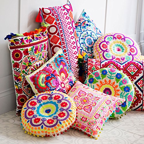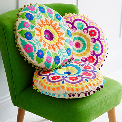 -. Feature : Hochwertig und schön Besticktes Kissen / Canvas-Baumwolle / Durchmesser: 40 cm / Bezug abnehmbar / Kissen im Lieferumfang enthalten