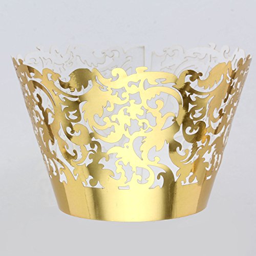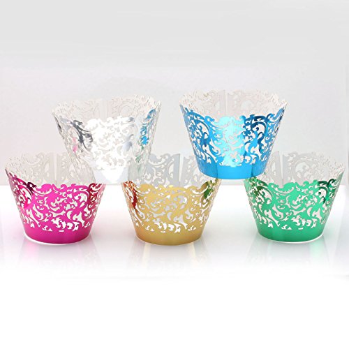 Yerwal 60pcs Mix Color Colorful Mirror Filigree Little Vine Lace Cupcake Wrapper Liner Baking Cup Muffin Case Trays Wedding Birthday Party Decoration