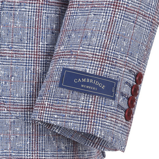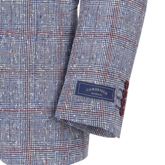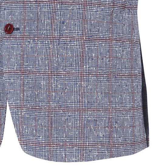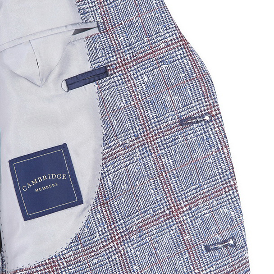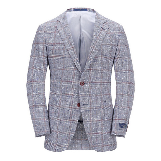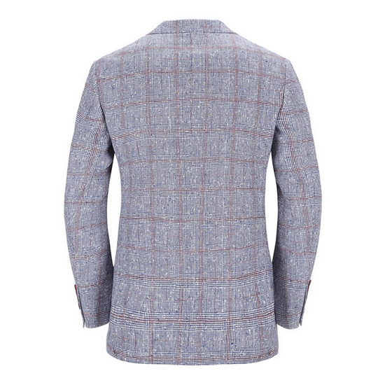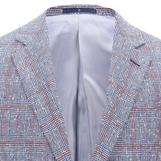 - 시원한 블루톤의 체크 조직을 매치한 남성 자켓.