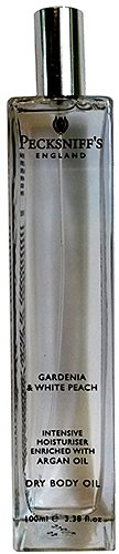 Pecksniff's Gardenia & Peach Intensive Moisturizer Enriched with Argan Oil - Dry Body Oil Spray leaves skin fully moisturized & feeling non-greasy. Formulated to absorb into skin quickly.Feature