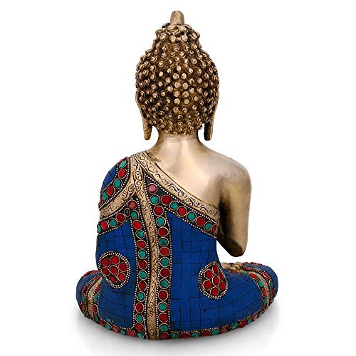 Blue Abhaya Buddha Statue - Brass Handmade Figurine - Medicine Buddha Home Decor