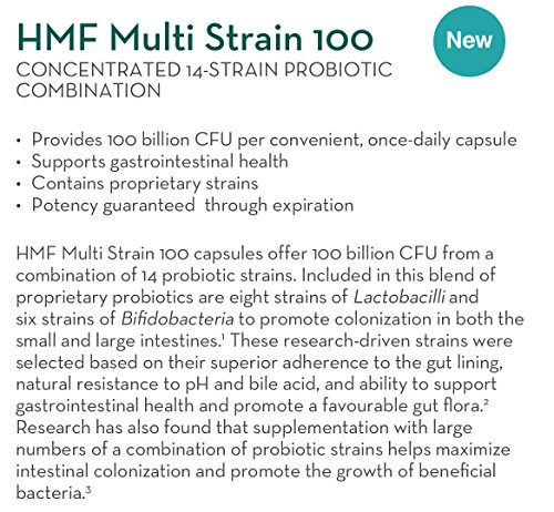 Studio : Seroyal Publisher : Seroyal Binding : Health and Beauty Product Description HMF Multi Strain 100 capsules offer 100 billion CFU from a combination of 14 probiotic strains. Included in this blend of proprietary, human-sourced probiotics are eight strains of Lactobacilli and six strains of Bifidobacteria to ensure colonization in both the small and large intestines. These research-driven strains were selected based on their superior adherence to the gut lining, natural resistance to pH and bile acid, and ability to support gastrointestinal health and promote a favorable gut flora. HMF Multi Strain 100 also contains BL-04 and NCFMTM to support immune health. In addition, supplementation with a combination of CUL-60, CUL-21, CUL-34 and CUL-20 (plus vitamin C) was found to promote healthy immune responses in schoolchildren.* 0
